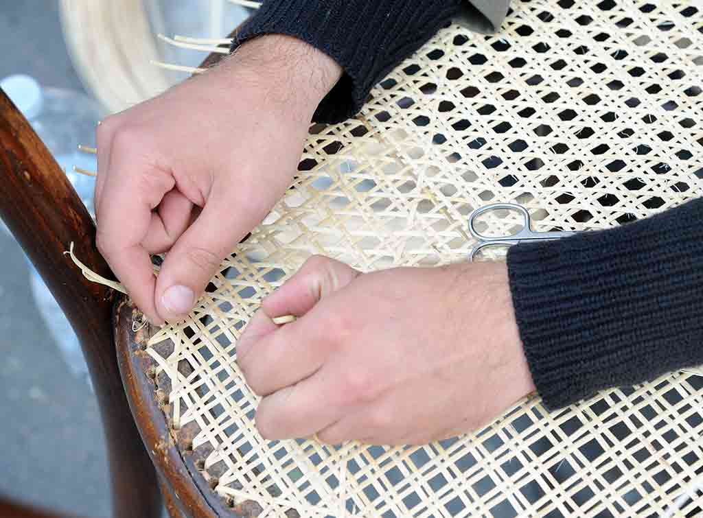 New to our roster is Lorna who will be demonstrating how to fix cane chairs and other furniture from 10 AM to Noon.